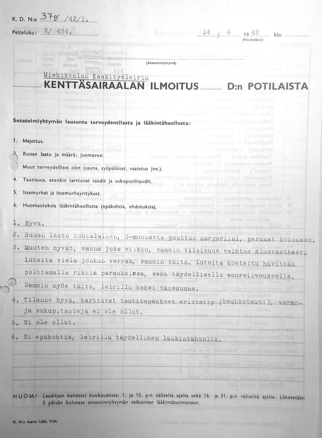 Artikkelin dokumenttiosa pohjautuu Arkistolaitoksen materiaaliin, jota on läpikäyty viitisen tuhatta sivua. Sodanaikaiset asiakirjat antavat sota-ajasta kovin arkipäiväisen kuvan ilman suurta draamaa ja ryssänvihaa.