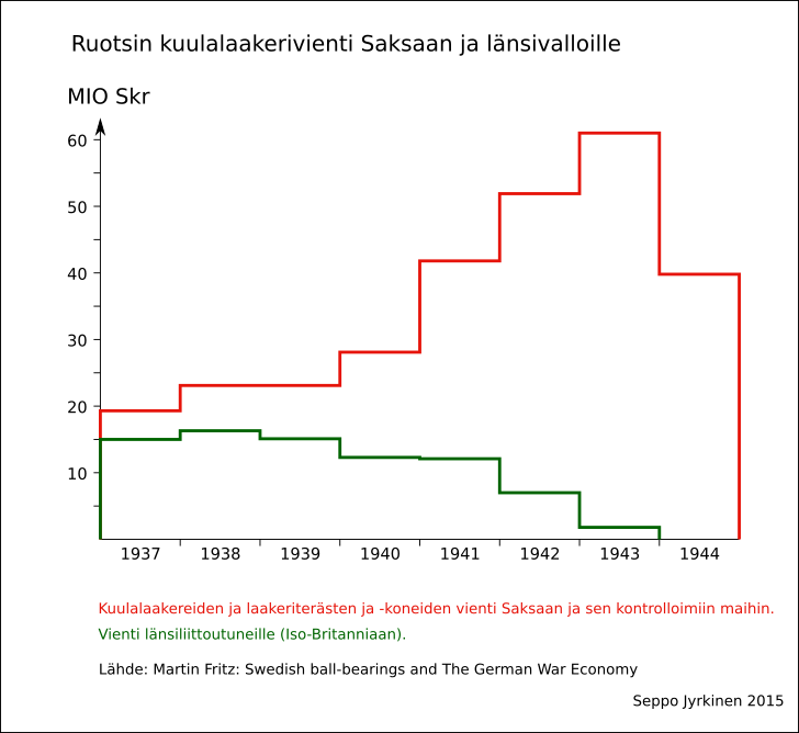 Kuulalaakereiden ja kuulalaakerikelpoisen malmin (jota oli vain osa kaikesta malmista) toimitukset Saksaan kasvoivat vuosittain läpi sodan aina vuoteen 1943/44 asti. Sodan loppuvaiheessa laakeriviennin aleneminen kompensoitiin laakeriteräksen ja laakerikoneiden viennillä. Samanaikaisesti laakereiden toimitukset länteen kutistuivat olemattomiin.