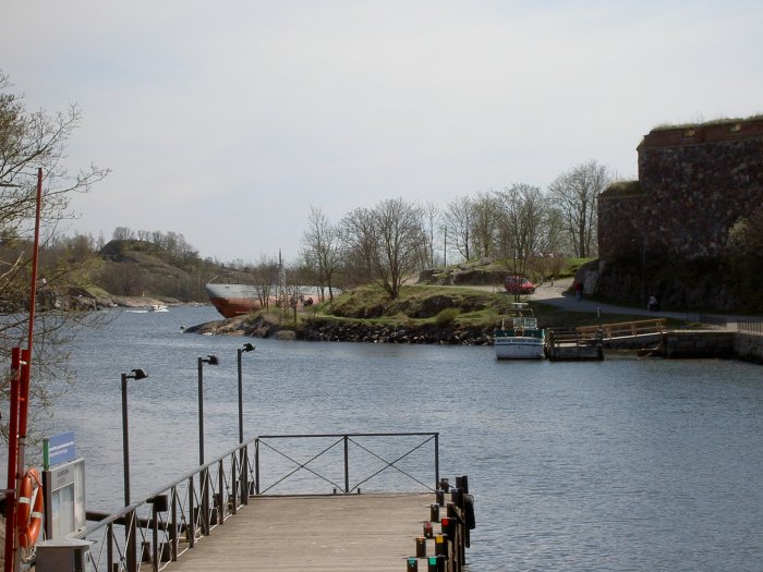 Suomenlinnan satama. Taustalla lautta, joka tällä kertaa ei törmäillyt minnekään, joten se hieman jo lupailtu extreame-tilaisuus jäi viettämättä...